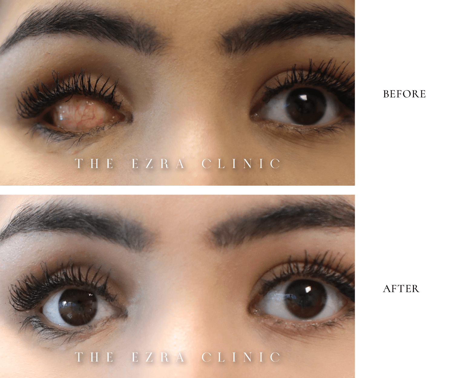 The area around the eye and the eyelids may exhibit redness, swelling, bruising, and sensitivity, which will gradually improve over time, with the redness fading to pink. It is normal to experience pain and soreness in the eye for a few days, as well as headaches, which can be treated with painkillers. Nausea is another possible side effect.